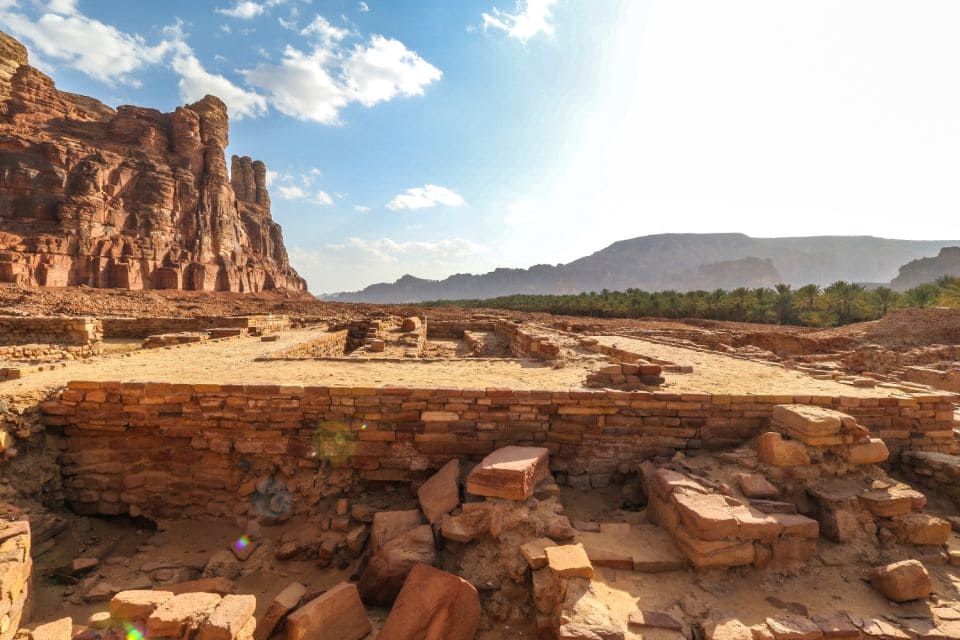 From an archaeological perspective, the immediate vicinity contains a unique concentration of precious artifacts, including well-preserved ancient stone inscriptions that illustrate the development of the Arabic language, and a concentration of rock dwellings and tombs that date from the Nabatean and Dedanite periods that coincided with Greco-Roman influence during classical antiquity. Saudi Arabia's first UNESCO World Heritage Site, Hegra (also known as al-Hijr, or Mada'in Ṣalih), is located 22 km (14 miles) north of the city, in AlUla governorate. Built more than 2,000 years ago by the Nabataeans, Hegra is often compared with its sister city of Petra, in Jordan. Meanwhile, the ancient walled oasis city of AlUla, locally known as al-Dirah, situated near the oasis's palm grove that allowed for its settlement, contains a dense cluster of mudbrick and stone houses. AlUla was also the capital of the ancient Lihyanites (Dedanites).