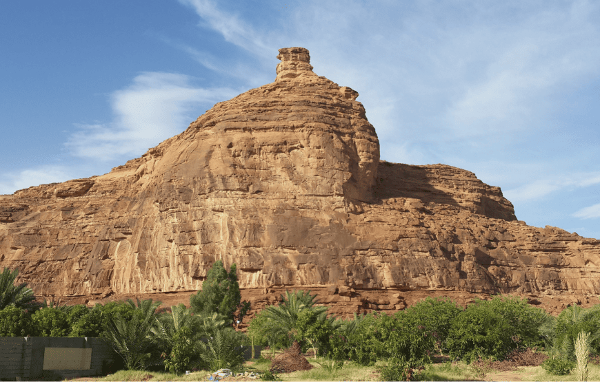 Start your tour by visiting the Hegra, also known as Madain Saleh, or Al-Ḥijr is an archaeological site located in the area of AlUla within the Al Madinah Region in the Hejaz, Saudi Arabia. A majority of the remains date from the Nabatean kingdom. The site constitutes the kingdom’s southernmost and largest settlement after Petra, it’s capital. The Archaeological Site of Al-Hijr (Madain Saleh) is the first World Heritage property to be inscribed in Saudi Arabia. Formerly known as Hegra it is the largest conserved site of the civilization of the Nabataeans south of Petra in Jordan. Then enjoy Elephant Rock, This spectacular rock formation resembles an elephant with its trunk touching the ground, is one of AlUla’s geomorphological wonders and became one of AlUla’s iconic landmarks. Then visit Jabal Ikmah, An open-air library across AlUla’s Valley, lie thousands of inscriptions in Aramaic, Dadanitic, Thamudic, Minaic and Nabataean, features one of the oldest inscriptions of the Islamic era dating back to 24AH (644 CE). Thousands of pre-Arabic inscriptions across numerous sites make AlUla an important location for studying the Arabic language. A mountain north of the AlUla Valley, AlAqra’a, features more than 450 early Arabic inscriptions. Naqsh Zuhayr, to the east, features one of the oldest inscriptions of the Islamic era — dating back to 24AH (644 CE). But no such site is more significant than Jabal Ikmah, home to the highest concentration of and most varied inscriptions in AlUla. In a beautiful desert landscape warmed by the sun, the largest “open library” in Saudi Arabia sits tucked away in a remote canyon valley. Dadan was a caravan way station for many peoples, and one of the clues that AlUla was truly a crossroads of civilisations is Jabal Ikmah, which was visited by those wishing to leave their inscriptions and offerings en route through AlUla. Records kept here — in the form of hundreds of inscriptions and carvings lining the cliff faces and rocks — ensured that Jabal Ikmah would be remembered throughout the ages. A visit to this magnificent site, with its inscriptions, thought to date as far back as the 1st millennium BCE, is a glimpse into the past.